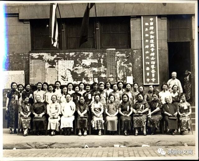 美国华人博物馆馆藏:妇女新生活运动会议合影(Carole Wong捐赠)。这张照片中记载的事情,就发生在中华公所所在地的楼前,合影背景是当年华埠居民获取国内外消息的张贴墙。