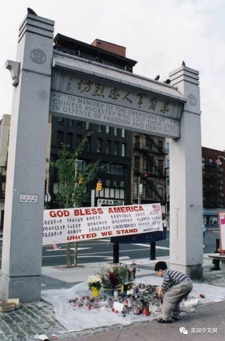 美国华人博物馆馆藏:且林士果广场华裔军人忠烈坊纪念911逝者活动(Lia Chang摄)
