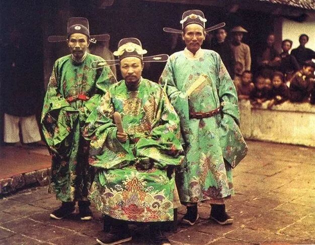 实际上,越南的帝国时代在法国殖民地时代已经成为过去,在被法国殖民的过程中,首先其文字开始被拉丁化,其次,其服饰受到新式服装的影响。而来自北方“夷狄”的清朝,也对越南无不影响。作为名义上的附属国,越南无可避免的要忍受清国的文化输入,带有满清风格的服饰也多多少少在越南产生影响,这种影响实际上也在朝鲜出现过。
